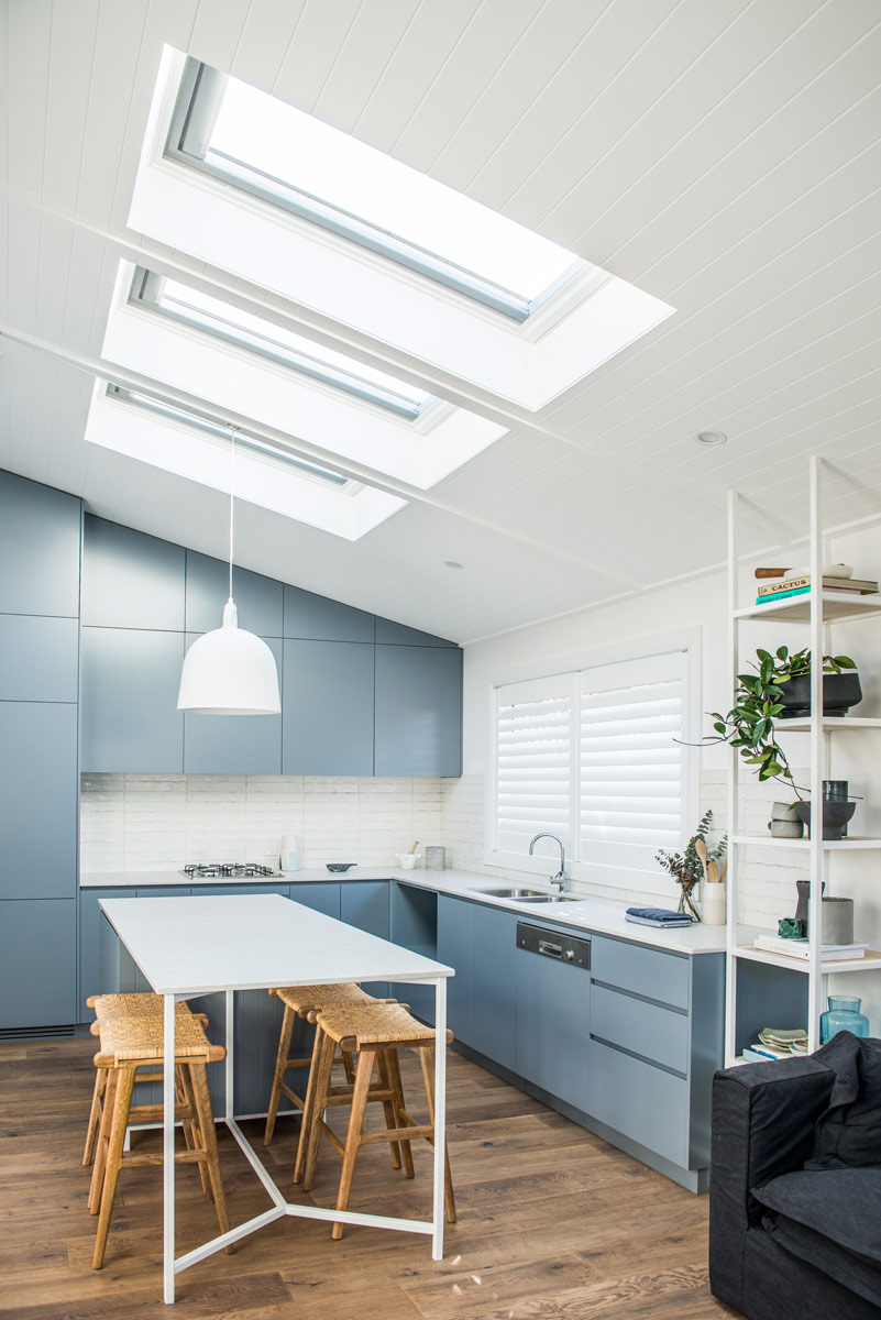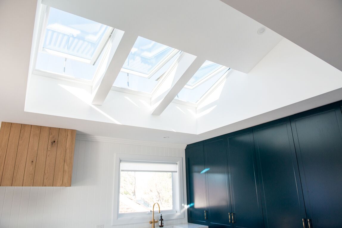 Posted on February 28, 2018August 17, 2021 by Coastal Velux Natural Lighting and Ventilation were the Velux suppliers for Kyal & Kara’s latest renovation masterpiece at Long Jetty. 3 Roof windows in kitchen brings in so much natural light Velux lights up what would otherwise be a dark bathroom These Velux roof windows open which allows steam and moisture to escape. The natural light highlights the different finishes and chosen colours. Being able to see the sky above adds a whole other dimension to this space Fresh air in …cooking smells out.